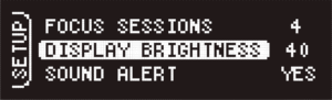 You can adjust various system parameters directly on the Penodoro device through the [SETUP] menu.
