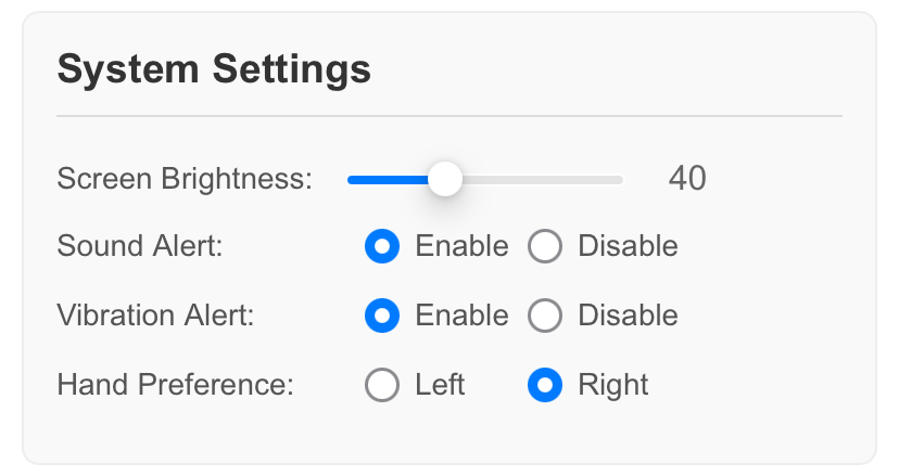 • Select your preferred hand orientation (Left-handed or Right-handed) to optimize display layout and button interaction.